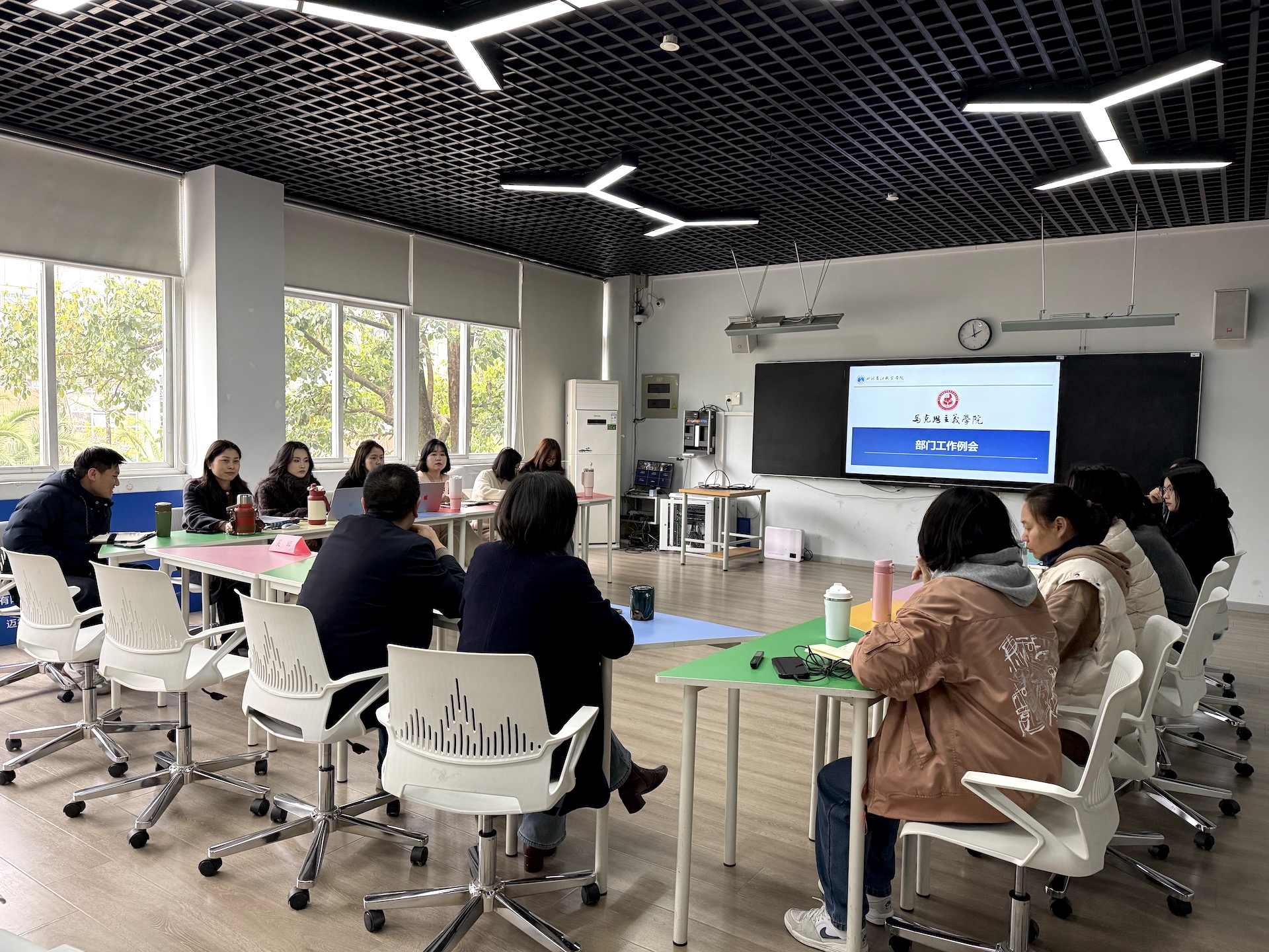 【本网消息】(马克思主义学院 刘佳丽、曾小玲供稿)3月19日,马克思主义学院在中庭201召开部门工作例会暨教学比赛交流活动。马院在教师教学比赛交流环节特邀电子科技大学马克思主义学院党委副书记商继政教授、成都轻工职业技术大学马克思主义学院副院长吴娅副教授到会指导。本次会议由院长张大能教授主持,全体教师参会。