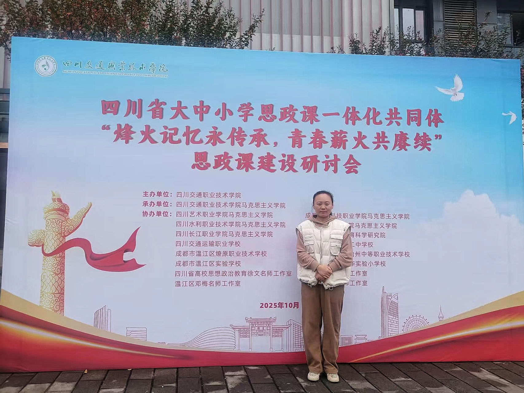 【本网消息】(马克思主义学院 叶双供稿)2025年是中国人民抗日战争暨世界反法西斯战争胜利80周年,为深入学习习近平总书记在纪念中国人民抗日战争暨世界反法西斯战争胜利80周年大会的重要讲话精神,充分发挥思政课立德树人主渠道作用,扎实推进大中小学思政课一体化改革创新,四川省大中小学思政课一体化共同体于10月31日在四川交通职业技术学院召开“烽火记忆永传承,青春薪火共赓续”思政课建设研讨会,我校马克思主义学院是本次研讨会协办单位之一。